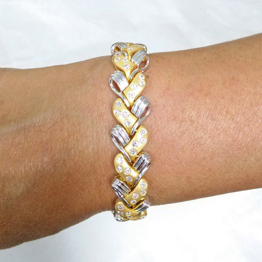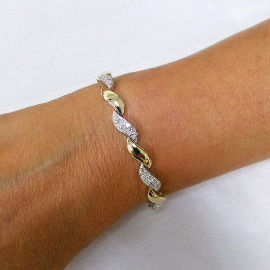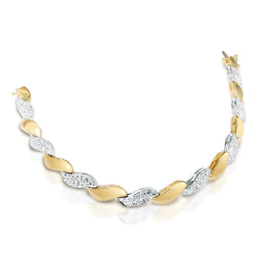 1.40 ctw. Diamond wave Bracelet in 14k White and Yellow Gold 2 Tone 7" inch | Diamond Swirl