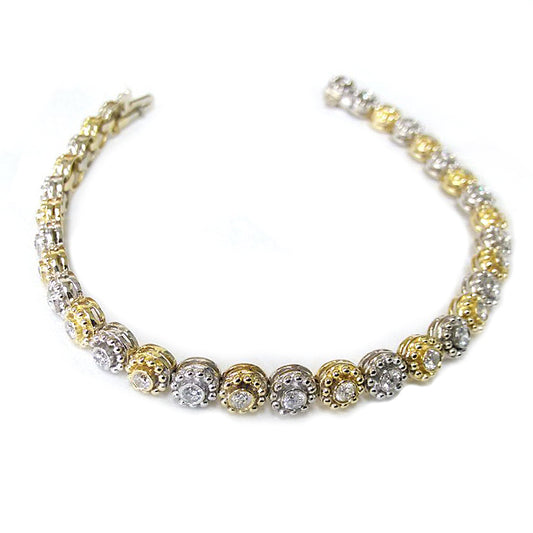 1.75 Ct Diamond Bezel Bracelet 14k 2 Tone, White and Yellow Gold