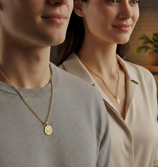 (Custom Order) Personalized Fingerprint Disc Charm Pendant with Custom Message in 14K Gold