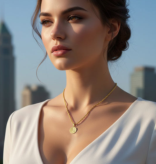 Custom Bezelled Fingerprint Round Pendant in 14K Gold