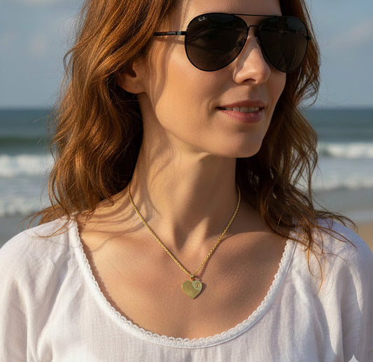 Custom Fingerprint Heart Charm Pendant with Initial Option in 14K Gold