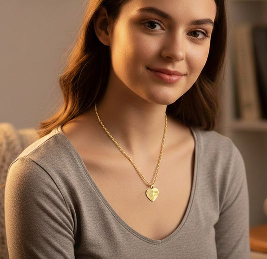 Custom Bezelled Fingerprint Heart Pendant in 14K Gold