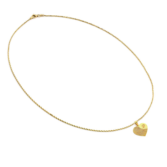 Custom Fingerprint Heart Charm Pendant with Initial Option in 14K Gold