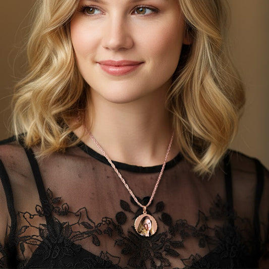 Round Picture Pendant - Round Shape with Rope Chain Frame, Black Border, and HD Laser Printed Custom Jewelry with Your Pictures