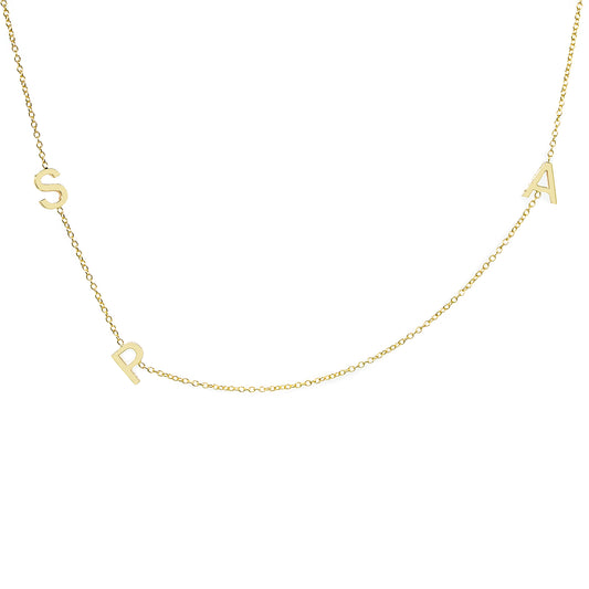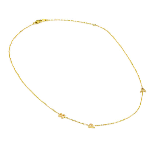 3 Initials Offset Letters Necklace in High Polished 14K Gold
