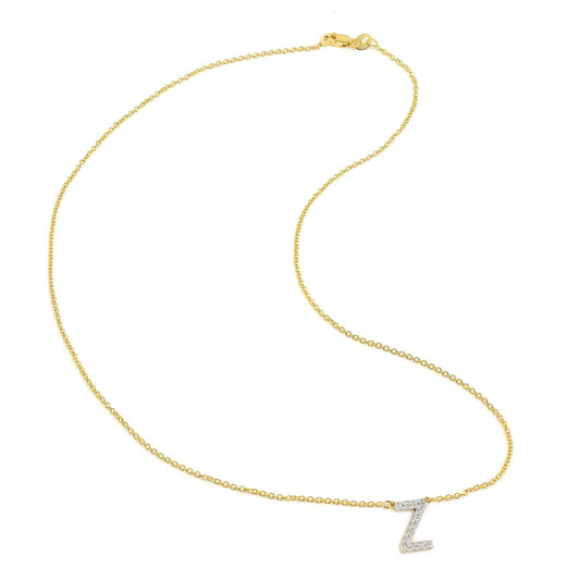 14K Gold and Diamond Pave Initial Necklace | 12mm