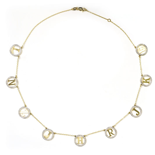 Multi-Initials Station Necklace in 14K Gold with Diamond Halo | Block Text