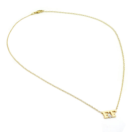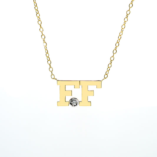 Roman Block Initials in High Polished 14K Gold and a Genuine Diamond In Between