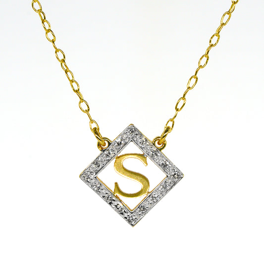 Initial Pendant Framed in Diamonds and Set in 14K Gold