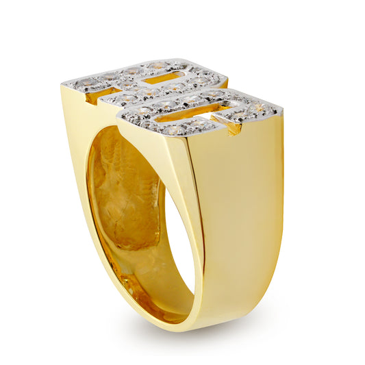 Custom 1 Initial Monogram Ring with Diamond Outline Halo