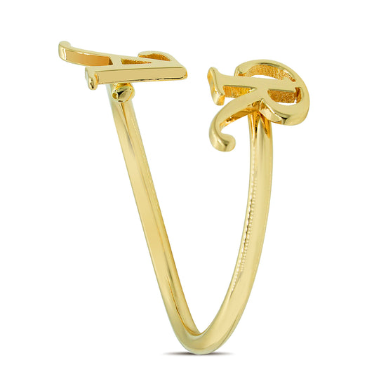 Two Letter Script Text Ring in 14K Gold | High Polish