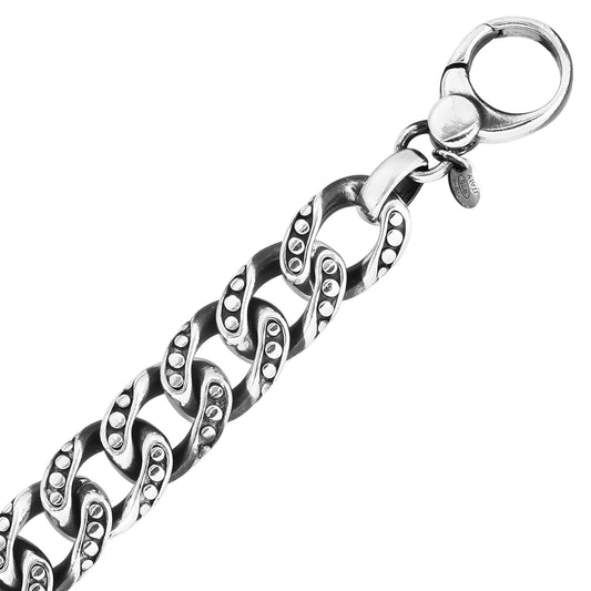 Men's Sterling Silver Gunmetal Open Miami Cuban Dot Bracelet with Lobster Clasp