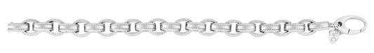 Sterling Silver Men's Cable Inlay Rolo Chain Link Bracelet
