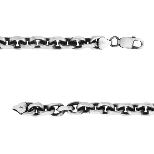 Sterling Silver Men's Cable Edge Rolo Link Chain Bracelet