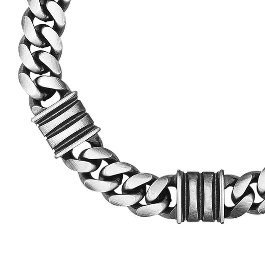 Men's Sterling Silver Gunmetal Double Bar Station Bracelet with Lobster Clasp