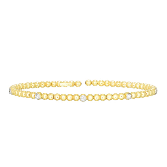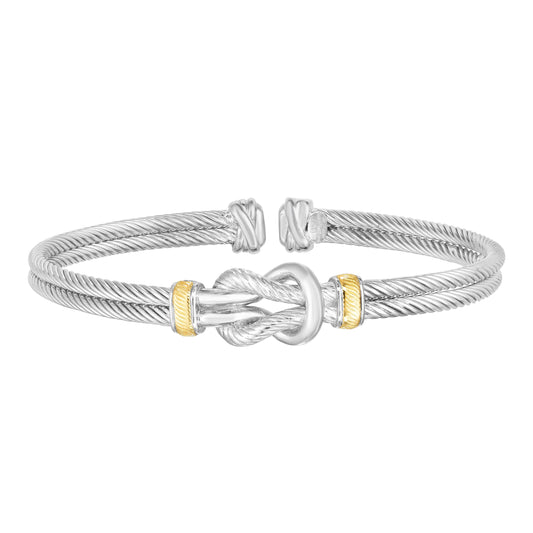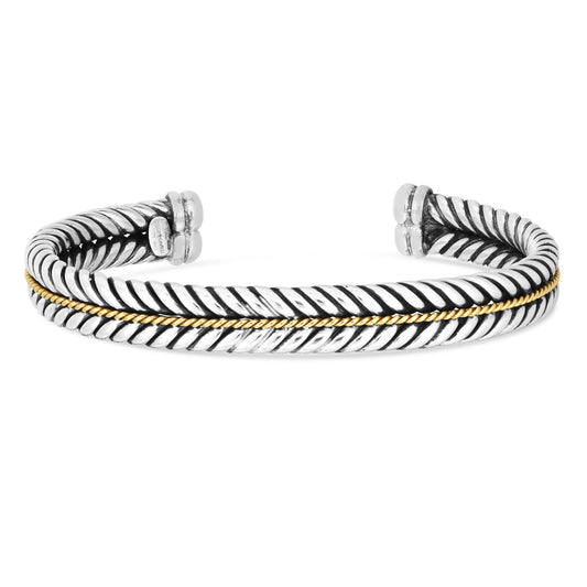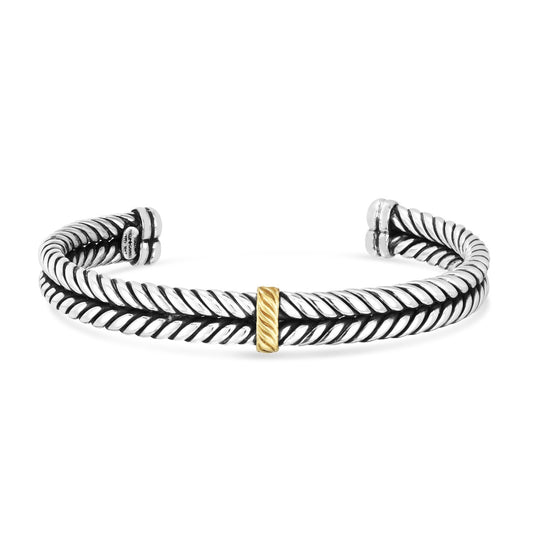 18K Gold & Sterling Silver Diamond Cut Cuff Italian Cable Bangle with 0.08ct White Diamond
