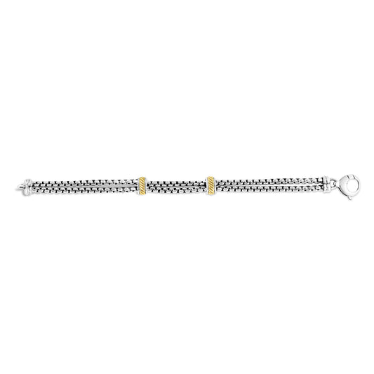 18K Gold & Sterling Silver Box Double Strand Men's Bracelet