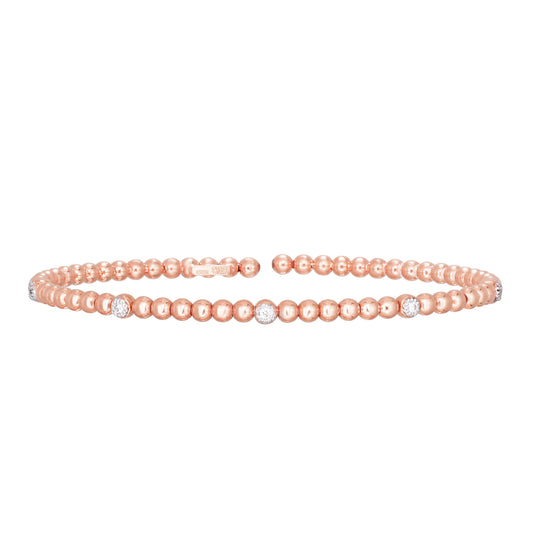 14K Gold or Sterling Silver with Polished Cuff Italian Cable Bangle and White Diamond