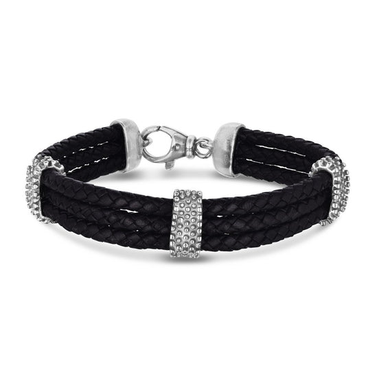 Sterling Silver and Leather Triple Strand Woven Bracelet