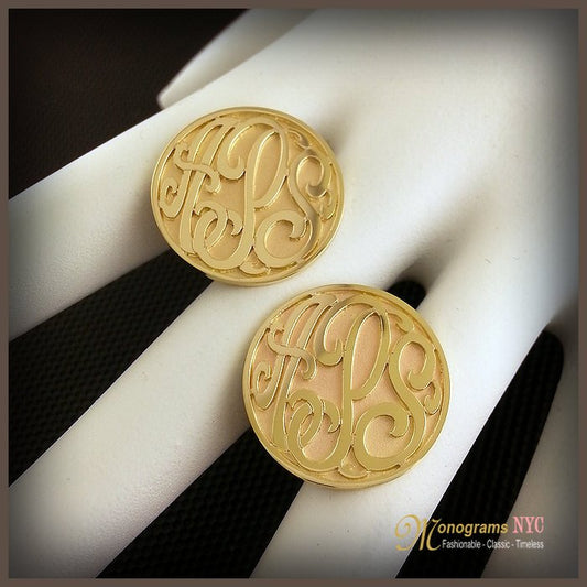Personalized 14K Gold 3 Initial Monogram Cufflinks