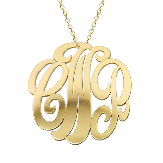 Personalized 1.25" 14k Gold Script Monogram Necklace