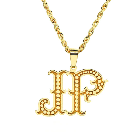 Gothic Initials Pendant Charm in High Polished 14K Gold | 0.75"