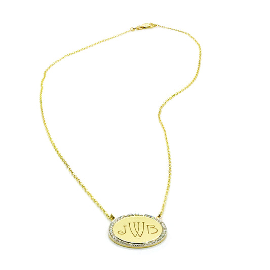 14K Gold Pendant with Custom Monogram and Diamond Halo | Matte Finish