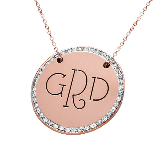 Personalized 14k Gold and Diamond Monogram Disc Necklace - Perfect Gift for Any Occasion