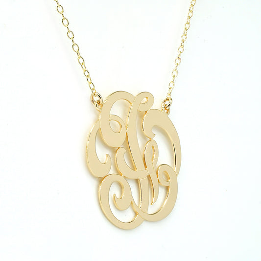 Personalized 1.25" 14k Gold Script Monogram Necklace