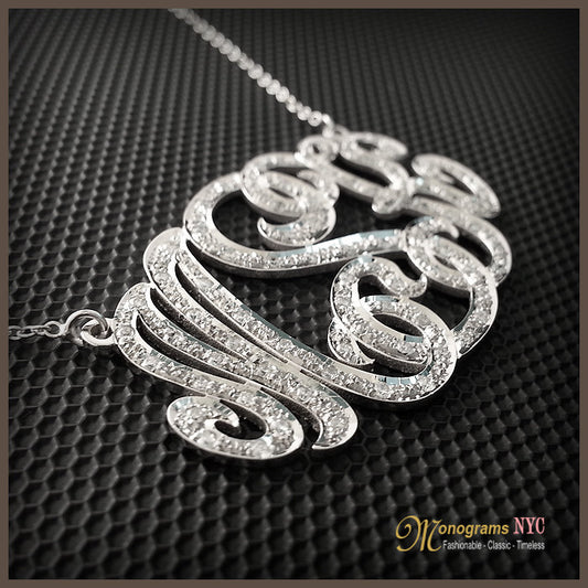 14K Gold and Diamond Script Monogram Necklace | Customizable 3 Character Monogram