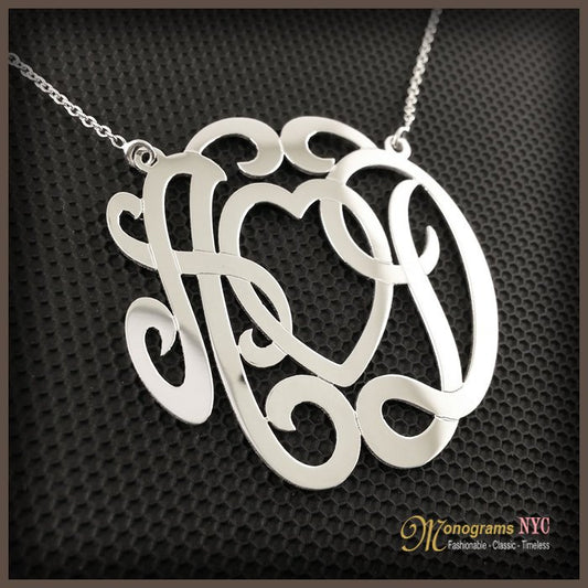 14K Gold Three Initial Monogram Heart Necklace | Personalized