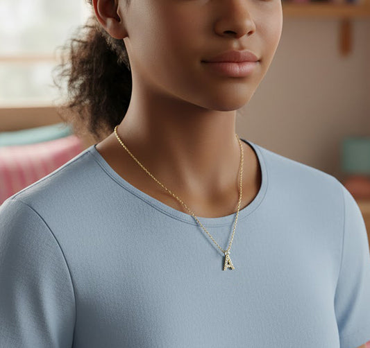 14K Gold and Diamonds Initial Letter Pendant Charm Necklace | 12mm