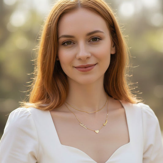 Personalized 2 Name Necklace with Heart Charm in Solid 14K Gold