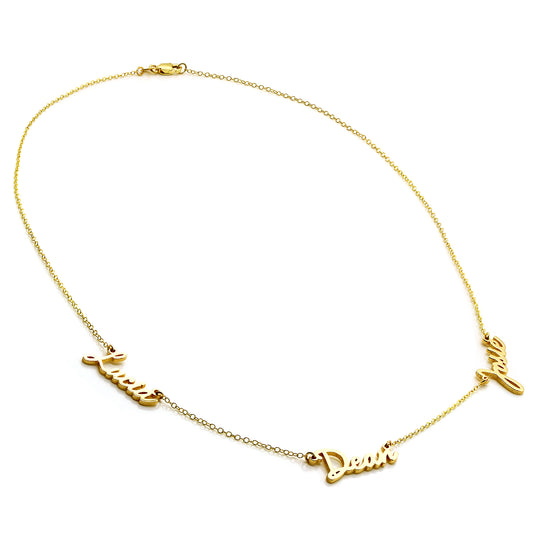 Freestyle Script Multiple Name Necklace in High Polished 14K Gold | 3/8" Tall
