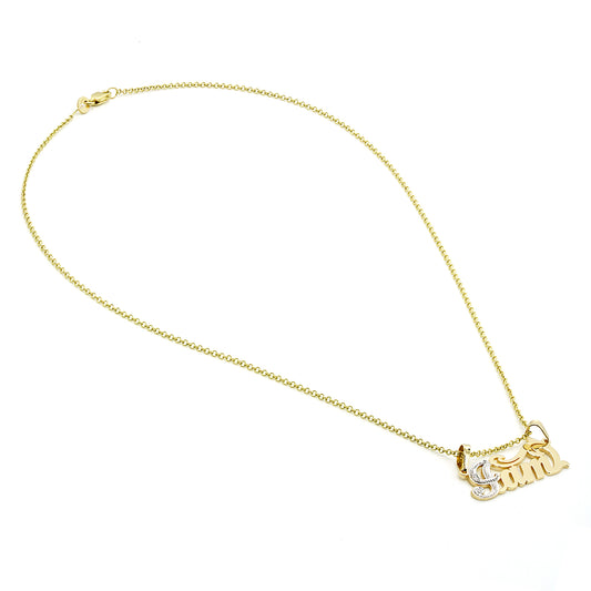 Custom 2 Name Nameplate Necklace with Hearts in Solid 14K Gold and Diamonds