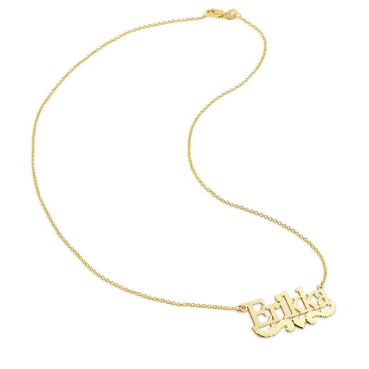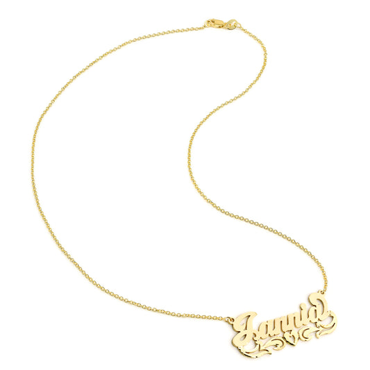 Solid 14K Gold Nameplate with Florentine Finish and High Polish