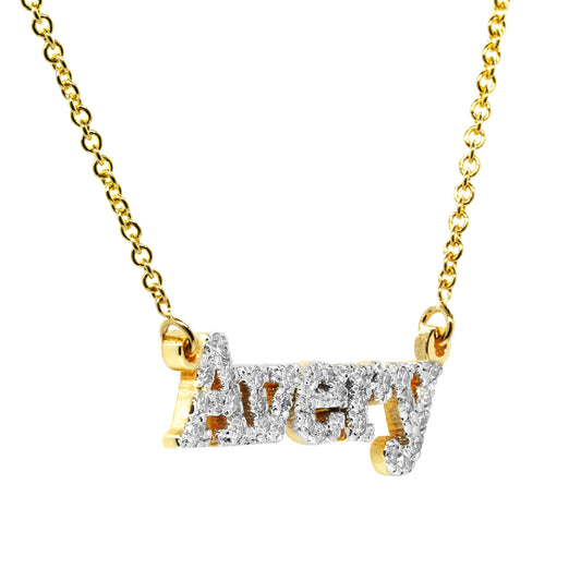 14K Gold and Pave Diamonds Freestyle Script Name Necklace | Small Size