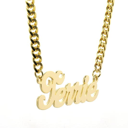Personalized 14K Gold Script Text Nameplate Necklace with Curb Chain