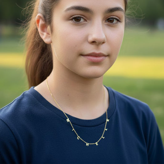 14K Solid Gold Block Text Name in a Station Necklace | 6mm Tall