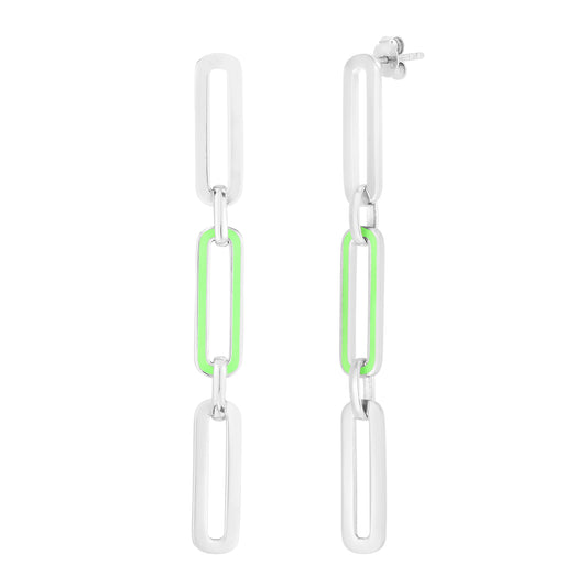 Silver Blue Enamel Paperclip Drop Earrings