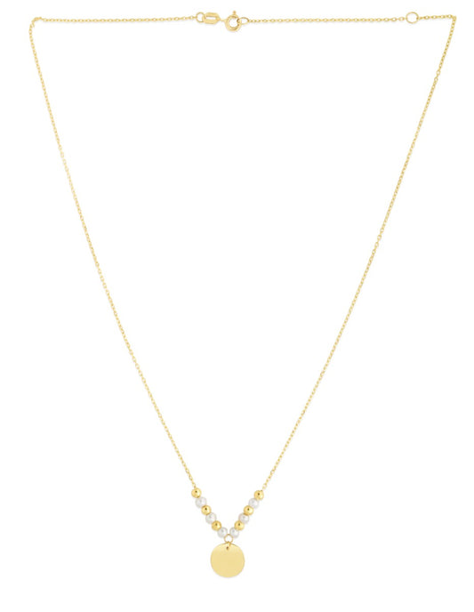 14K Gold & Pearl Bead Disc Drop Necklace with Spring RIng Clasp