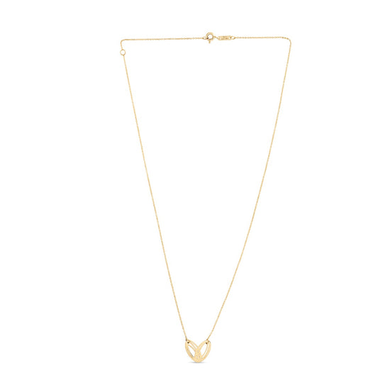 14K Gold Polished Small Loopy Heart Necklace with Spring Ring Clasp