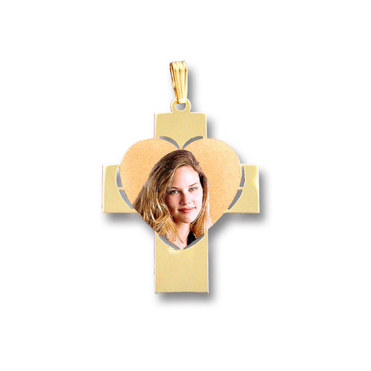 Picture Pendant - Cross with Heart Cut-Out Shape for Personalized Photo Charm | Sterling Silver