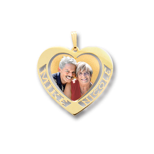 Customizable Picture Pendant - Cut Out Heart Shape with Names for Personalized Photo Charm | Sterling Silver