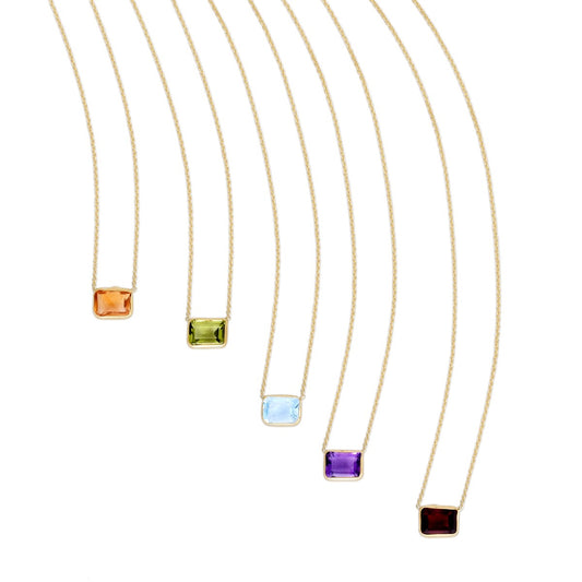 14K Gold Emerald Cut Gemstone Necklace