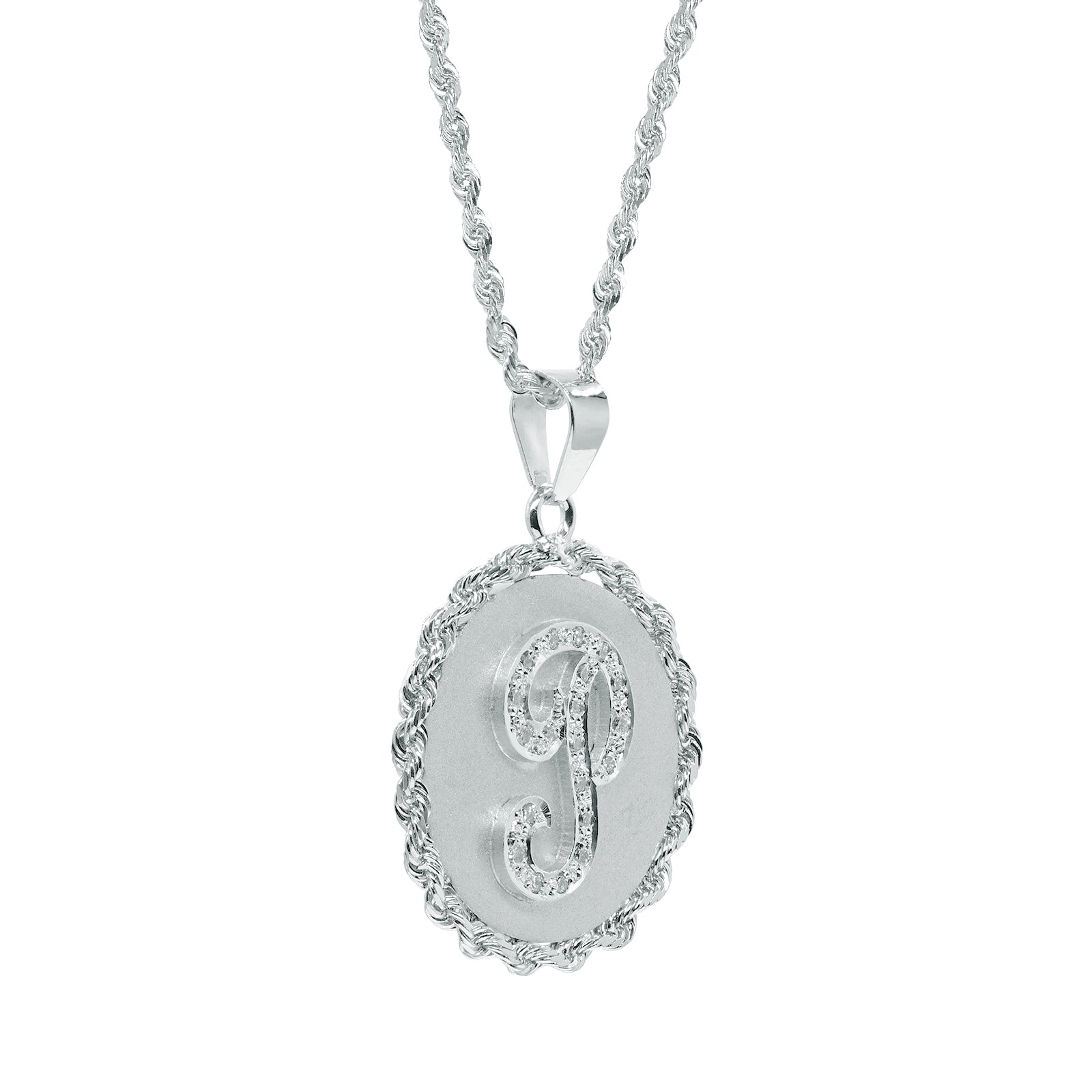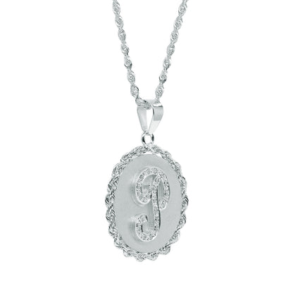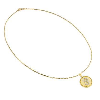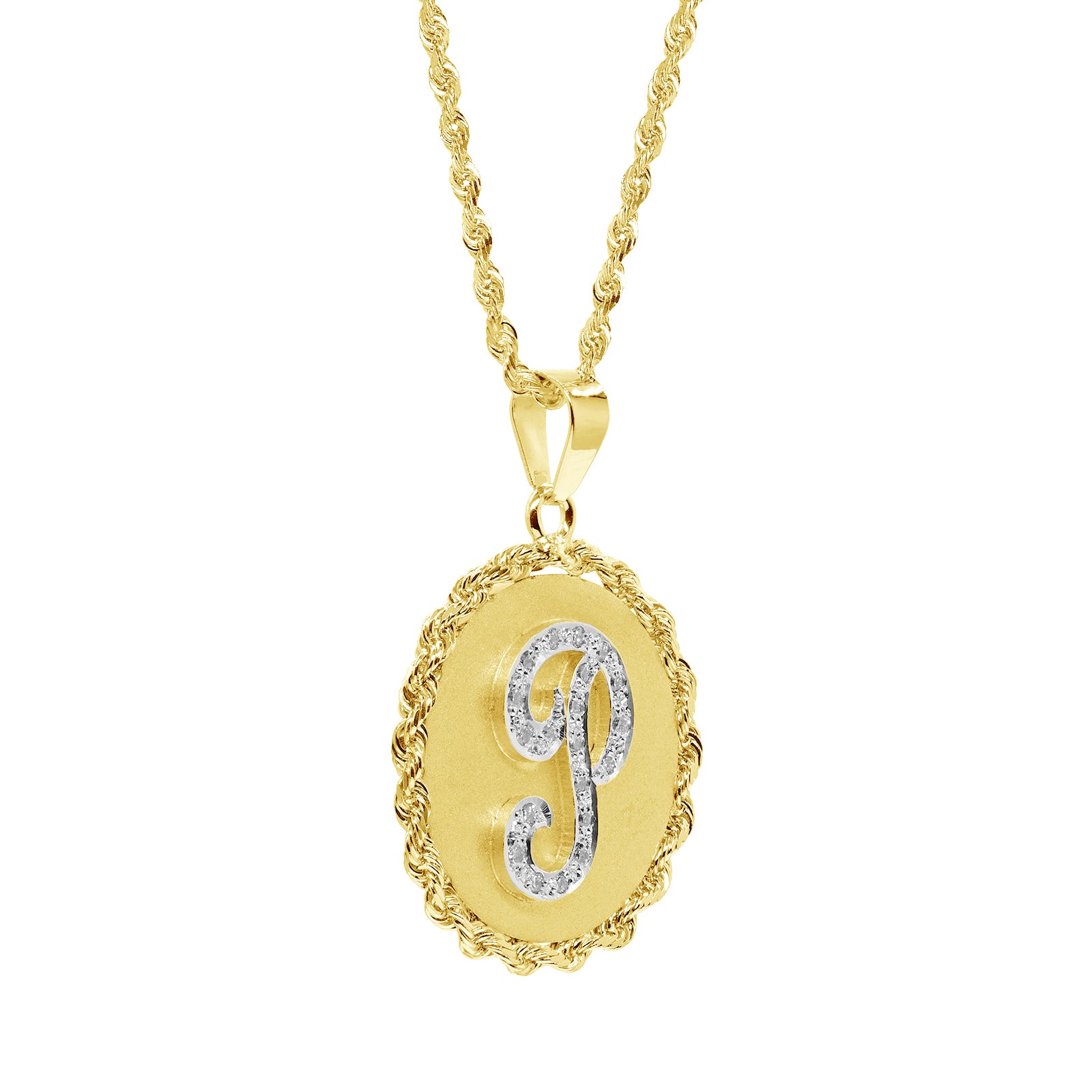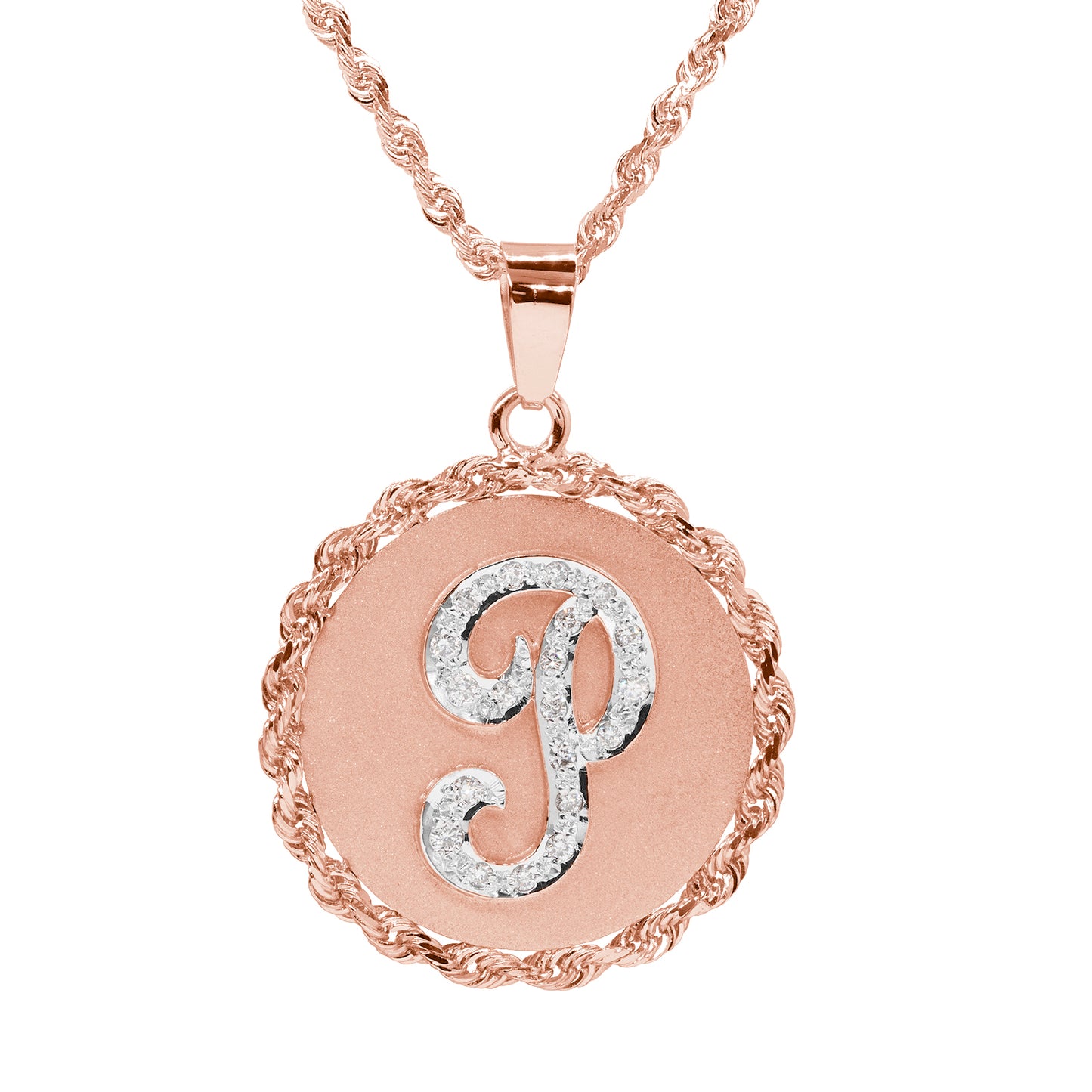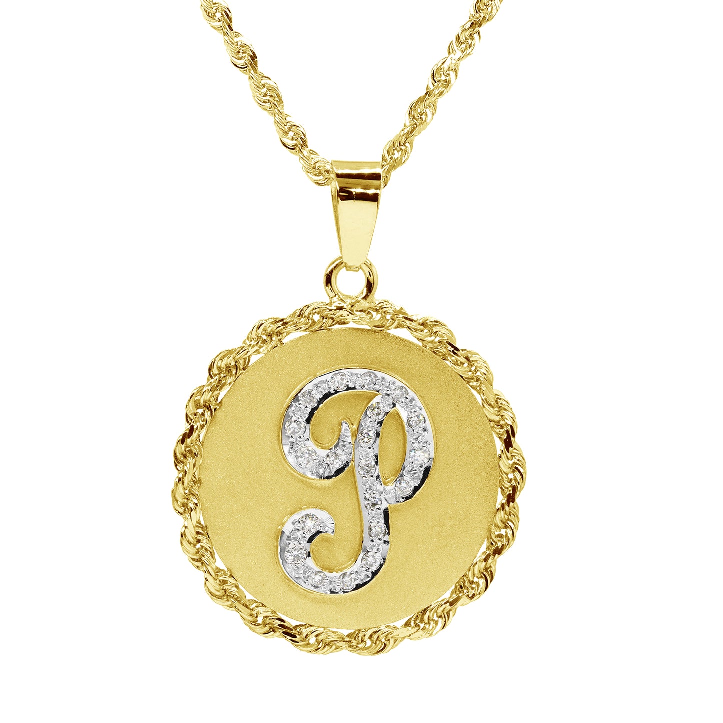 0.50ct Diamonds and High Polished 14K Gold Disc Initial Pendant Charm with Rope Chain Frame