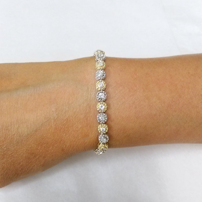 1.75 Ct Diamond Bezel Bracelet 14k 2 Tone, White and Yellow Gold