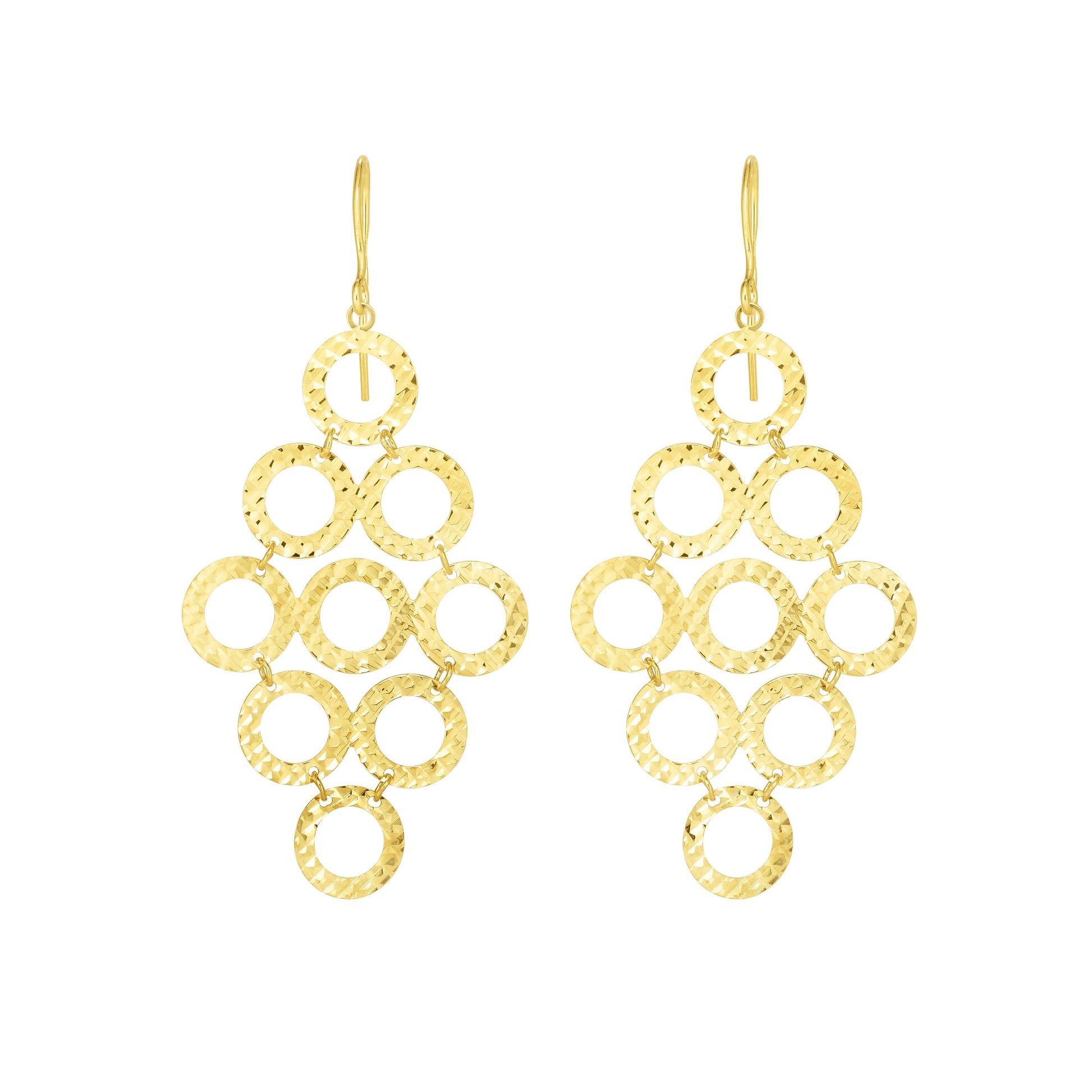 14K Gold Diamond Cut Circles Chandelier Earring
