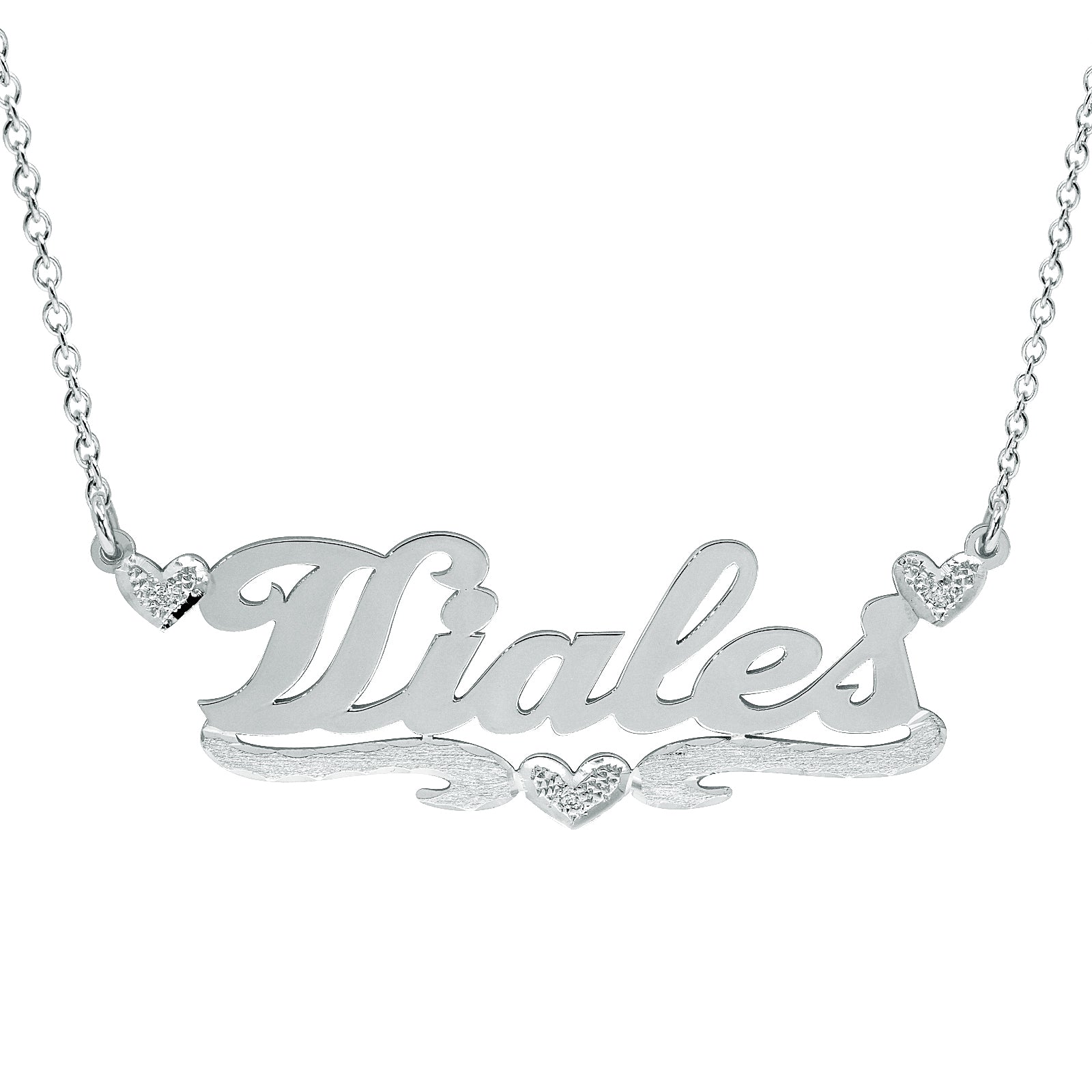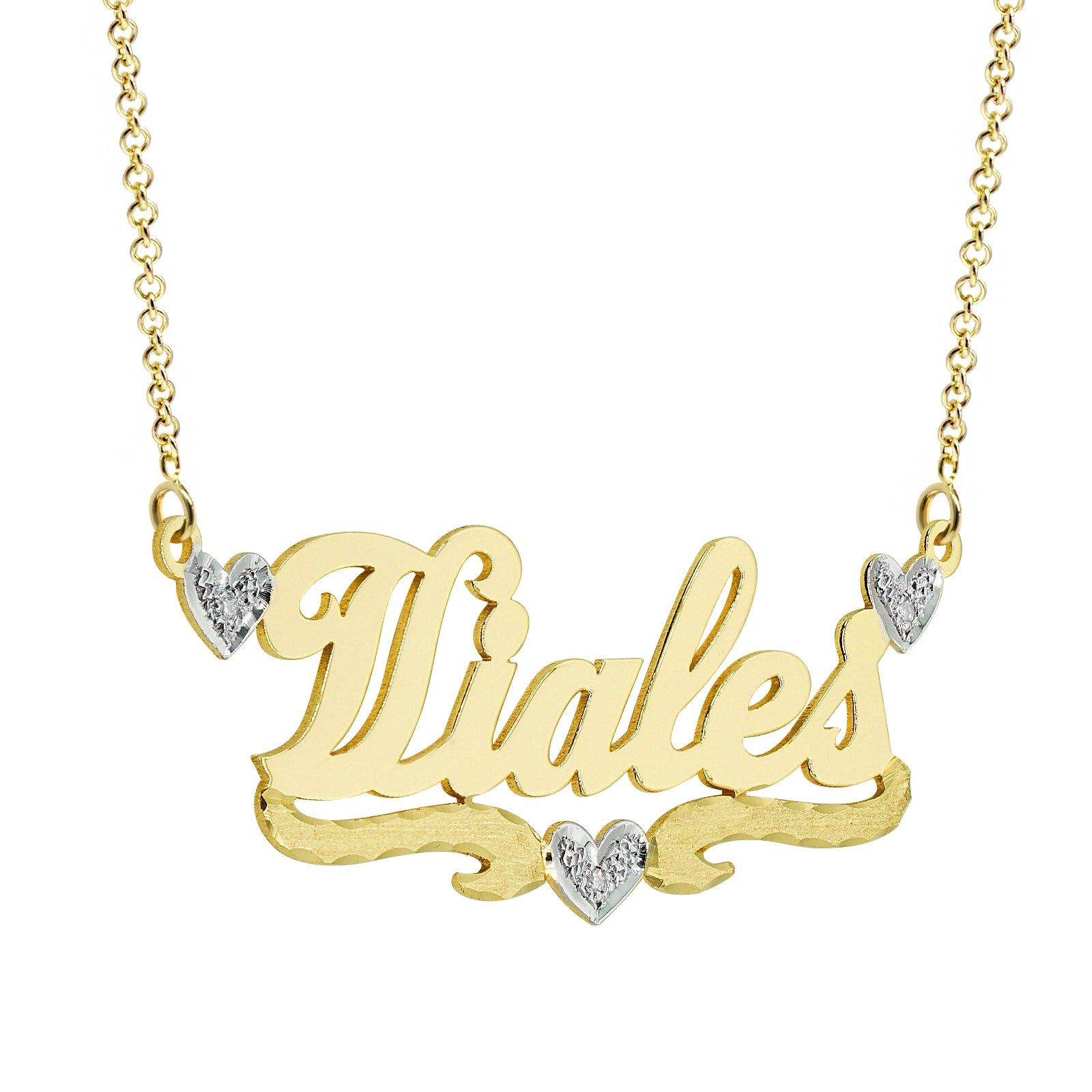 14K Gold Nameplate with Diamond Hearts with High Polish Names