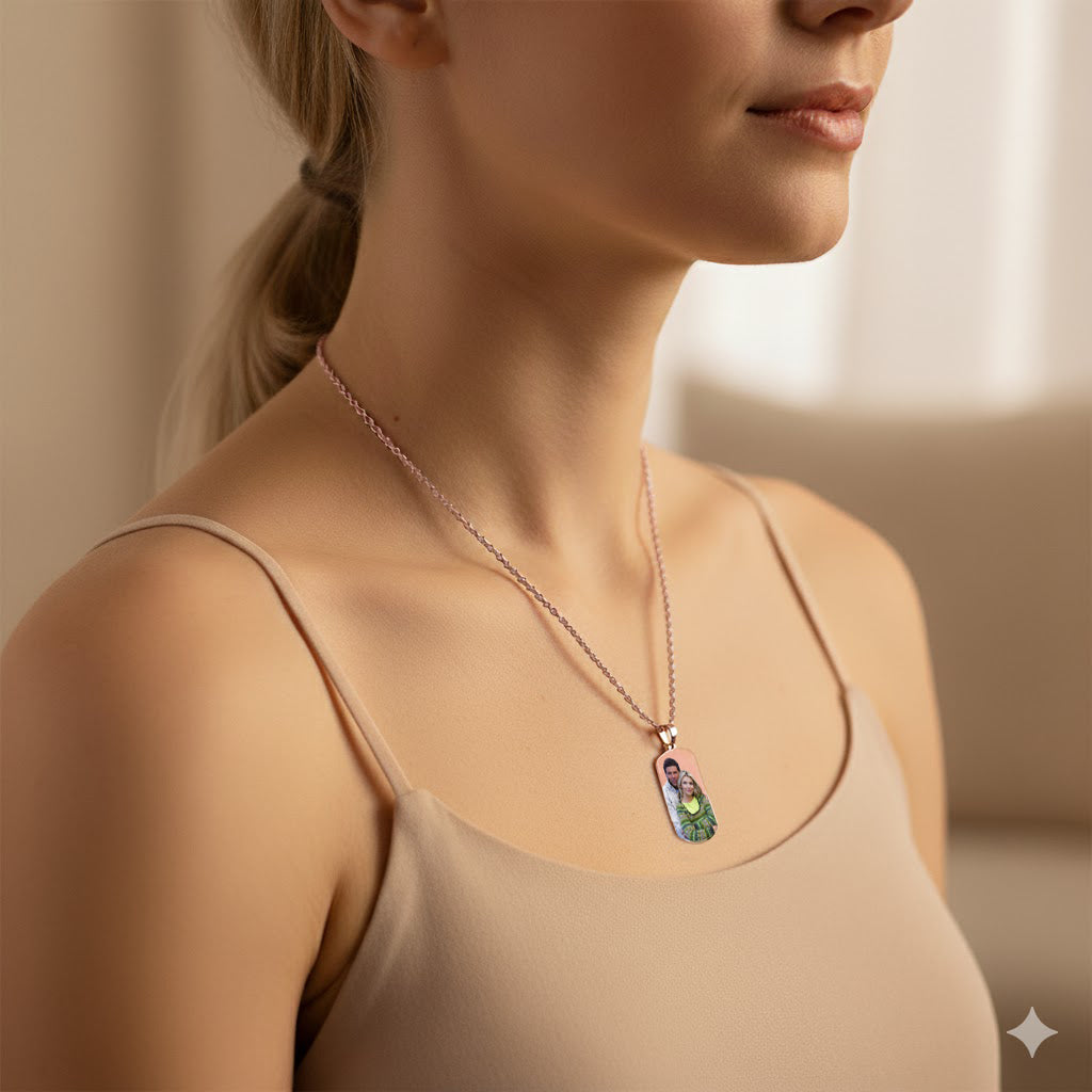 Stylish 14K Gold Picture Pendant Solid Dog Tag Shape for Customized Jewelry